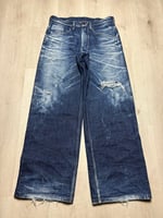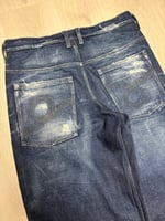 Washed raw denim jeans